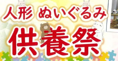 7月20日(土)13時から「人形・ぬいぐるみ供養祭」施いたします。ご希望の方は時間厳守にて直接会場にお持ちください。