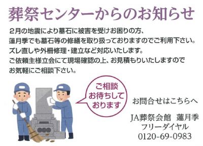 地震等で被害を受けお困りの方【JA葬祭会館 蓮月季