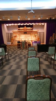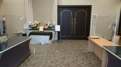 そして焼香台は会館入口に配置し、式場に入らなくてもご焼香いただくような対策をとっております。