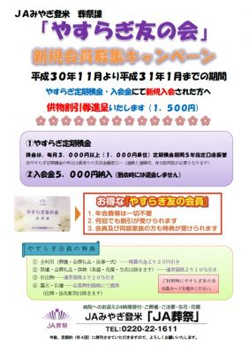 また11月より「やすらぎ友の会」新規会員募集キャンペーンを実施いたします!