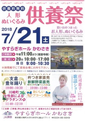 7/21開催(株)ジェイエイ仙南サービス「やすらぎホールかわさき」人形・ぬいぐるみ供養祭について