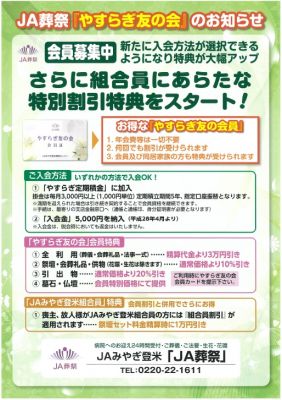 JAみやぎ登米『やすらぎ友の会』会員募集について