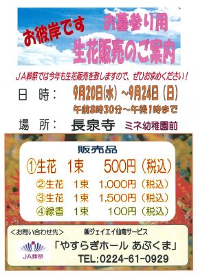 9/20~9/24開催(株)ジェイエイ仙南サービス お彼岸生花販売のご案内について