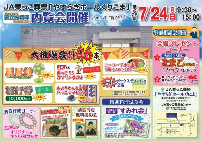 7/24開催 JA栗っこ葬祭「やすらぎホールくりこま」内覧会の開催について