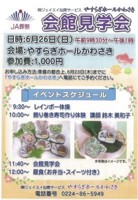 (株)ジェイエイ仙南サービス「やすらぎホールかわさき」にて会館見学会を開催いたします。