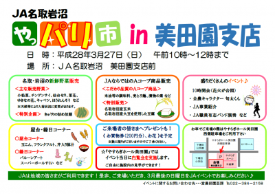 JA名取岩沼 美田園支店にて「やっパリ市 in 美田園支店」を開催いたします。