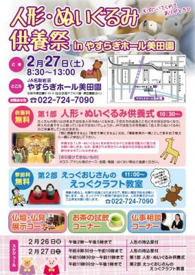 JA名取岩沼にて人形・ぬいぐるみ供養祭を開催いたします。