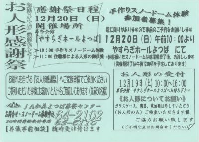 12/20JA加美よつば「やすらぎホールよつば」お人形感謝祭の開催について