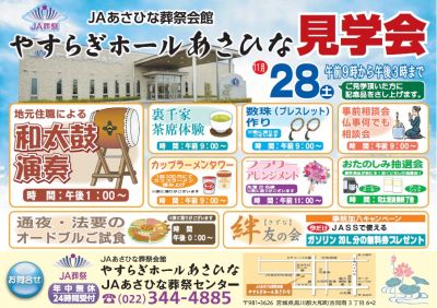 JAあさひな「やすらぎホールあさひな」にて会館見学会を開催いたします。