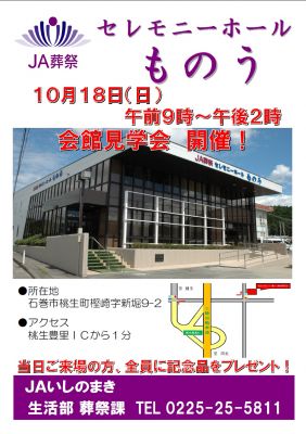 JAいしのまき「セモニーホールものう」にて会館見学会を開催いたします。